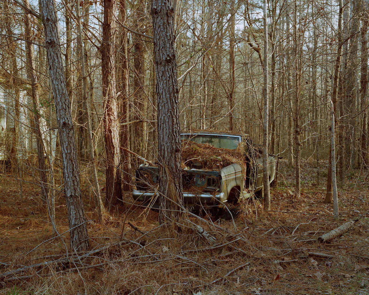 Stauffer’s own biography begins in North Carolina, where she was born but not raised. She grew up in the Midwest and studied photography there before moving to New York City and publishing the book Upstate, which rendered beautiful and specific the notions of decay and revitalization so often glibly used to describe for- mer industrial cities like Hudson, New York. Eventually, she moved back to North Carolina, after taking a job at East Tennessee State University. Her earliest memories of the South are not her own but borrowed from the novels of Carson McCullers and Truman Capote and the photographs of Walker Evans and William Christenberry.