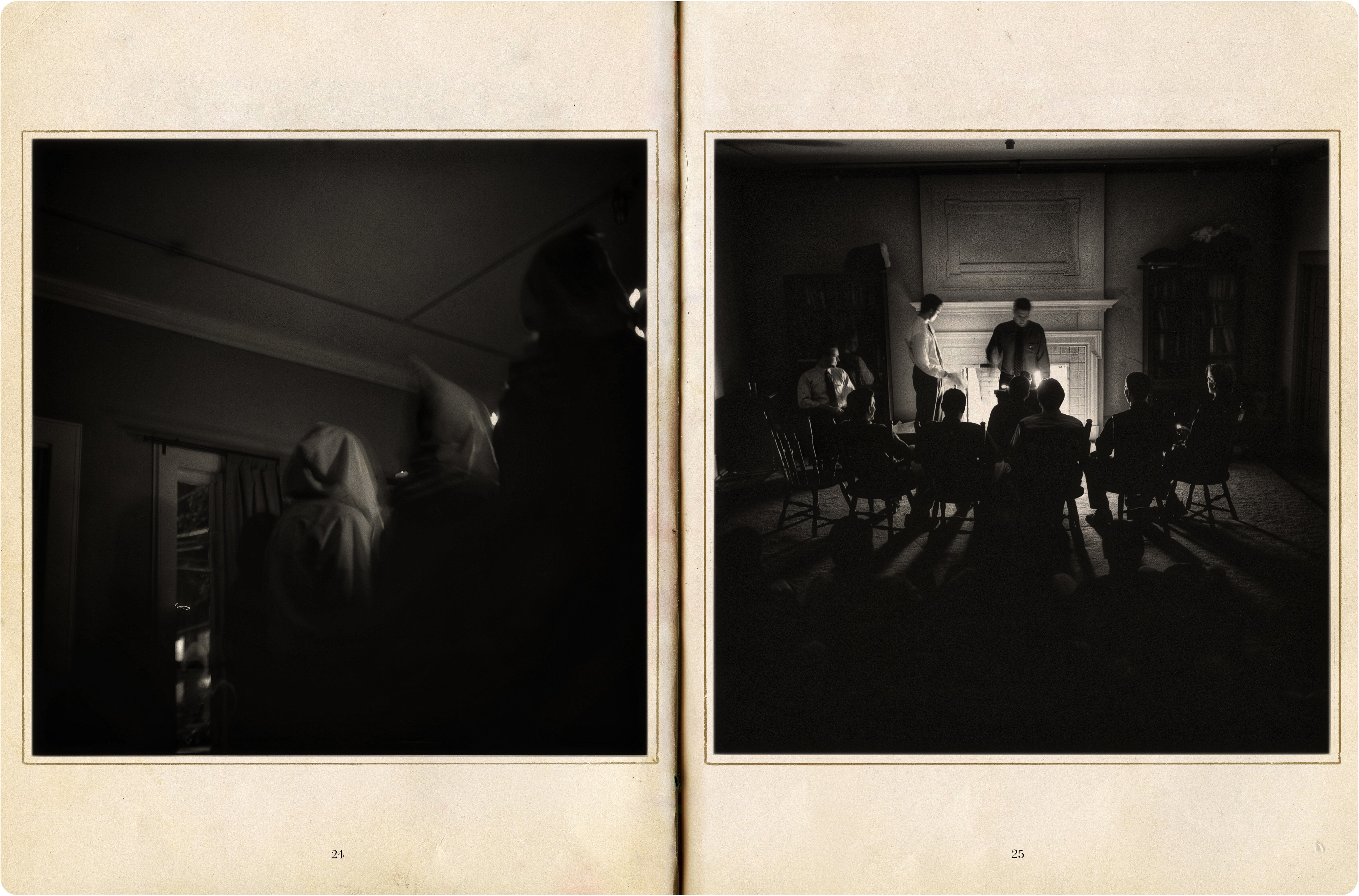 The American Fraternity is a photobook that provides an intimate and provocative look at Greek culture on college campuses by combining contemporary photographs with scanned pages from a wax-stained 60 year old ritual manual. This book will shed new light on the peculiarities of the fraternal orders which count seventy-five percent of modern U.S. presidents, senators, justices, and executives among their members. These mysterious campus organizations are filled with arcane oaths and ceremonies and this book attempts to capture within its pages some of this dark power.