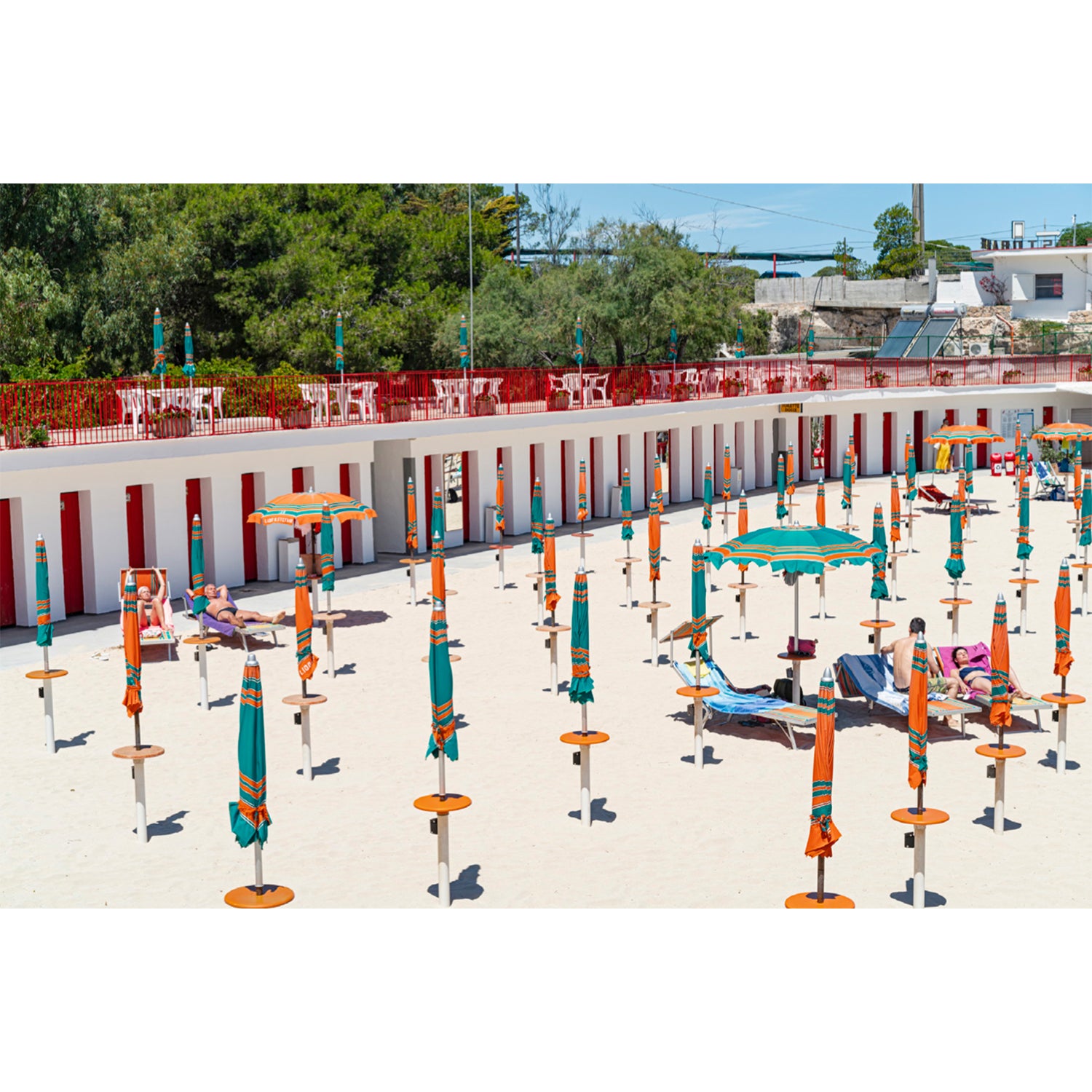 Shot on locations around the world, Captured by the Sea documents beach culture. Cantlin works as an invisible observer, quietly studying colors and textures, and patiently waiting for facial expressions and body language to evolve. It is the juxtaposition of these details, layered in the foreground, mid-ground, and background of her photographs that makes them transportive; encouraging curiosity provoking a creative narrative within the viewer. Captured by the Sea translates this culture and community by recording fleeting glimpses into how people experience the sea.