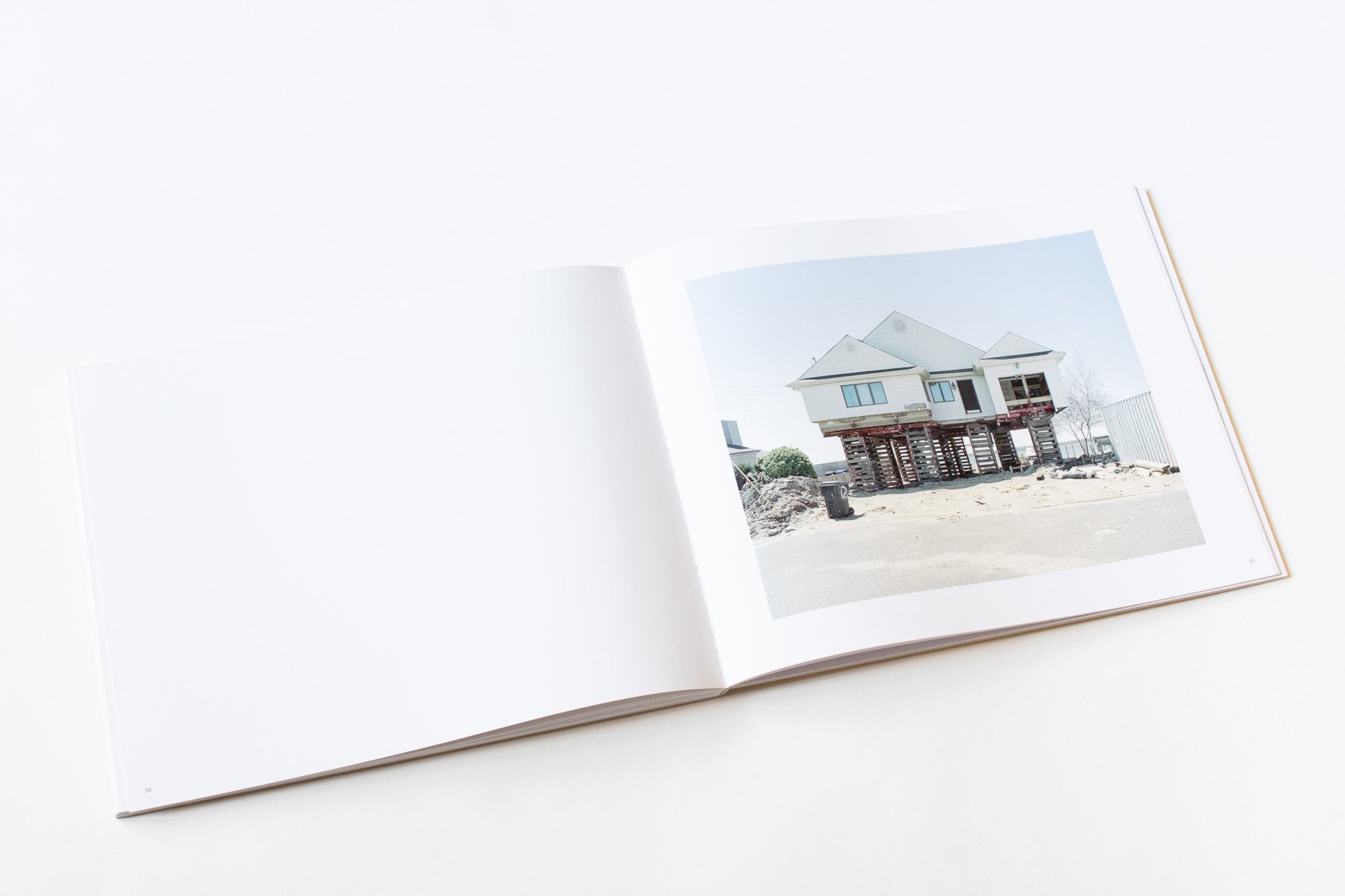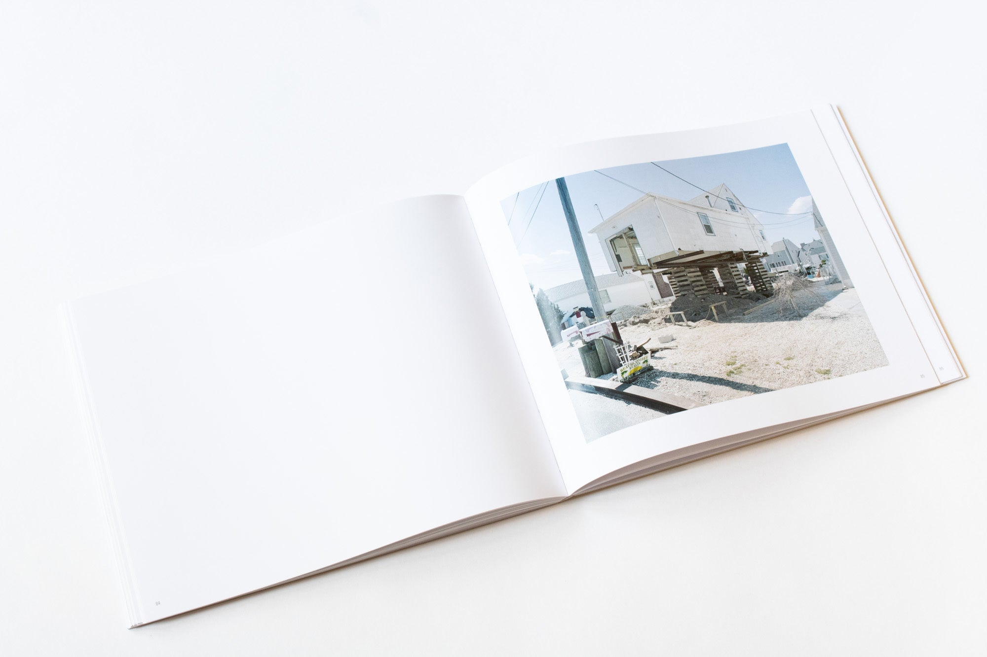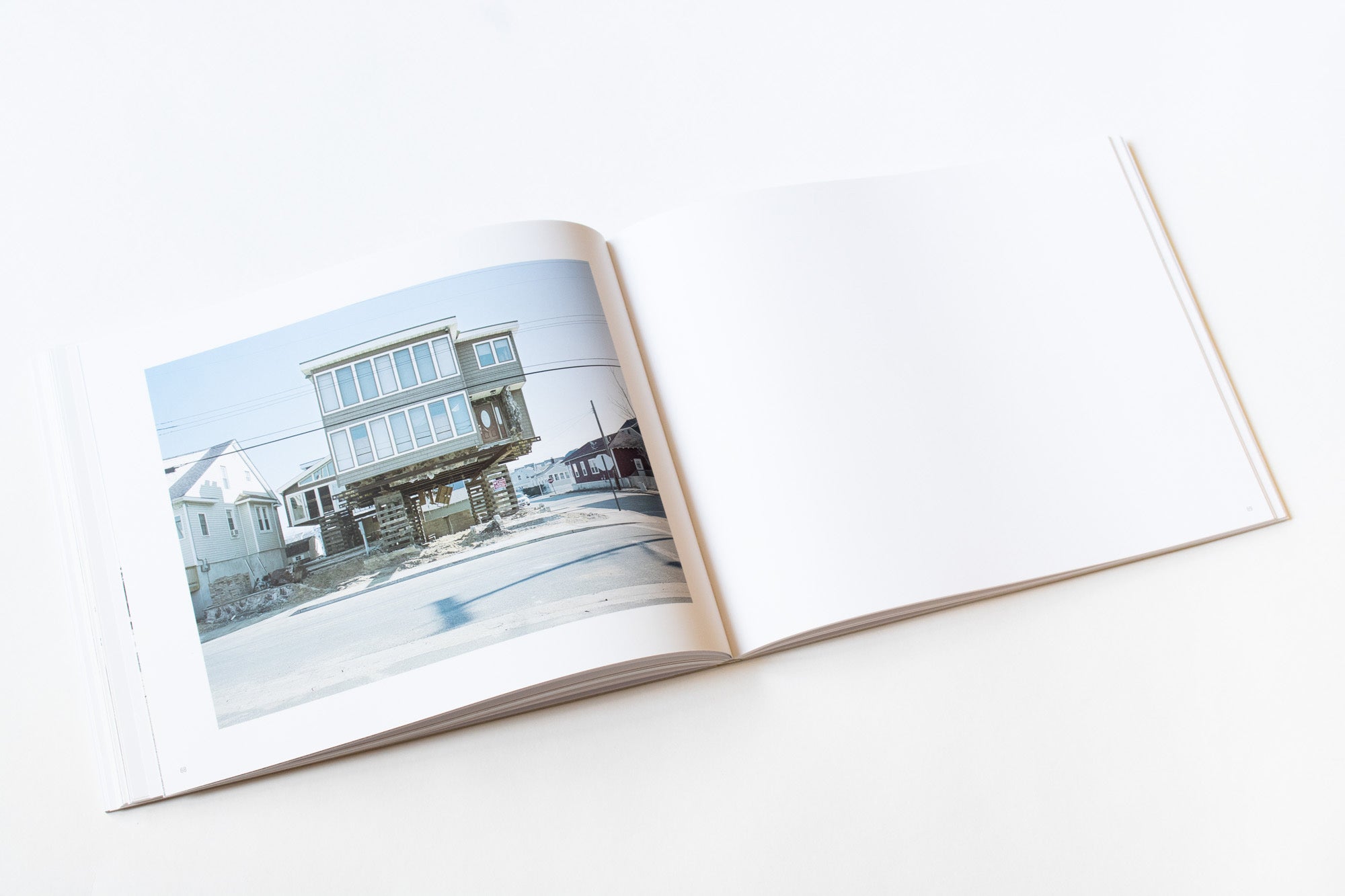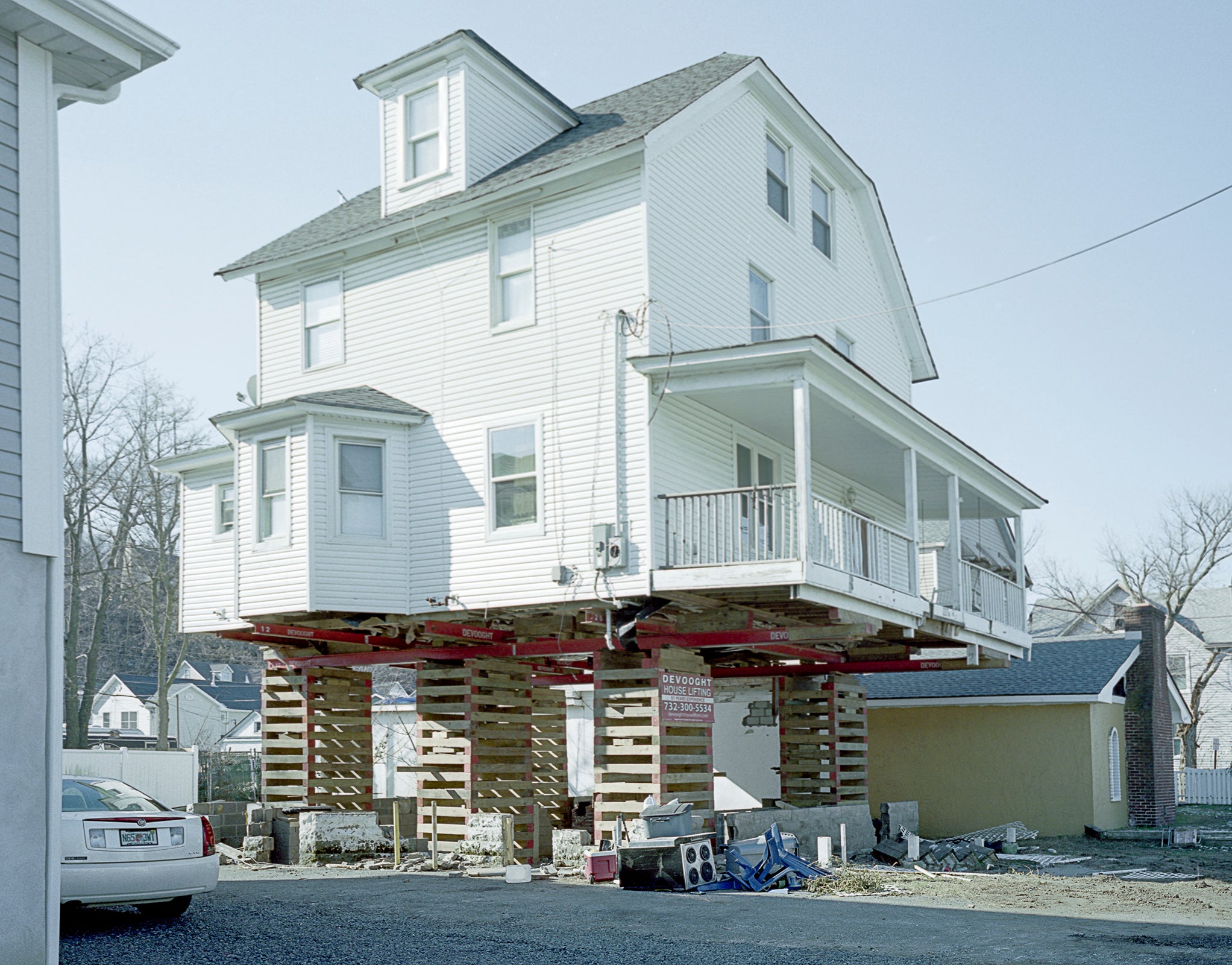 The Jersey Shore was devastated by Hurricane Sandy, and remains under threat from storms, erosion, and rising sea levels. Despite the overwhelming odds, people repair and rebuild their homes on this precarious land using a rudimentary elevation system. Houseraising is a typology of these strange structures, and a harbinger of our increasingly urgent battle with the forces of nature we have unwittingly unleashed.