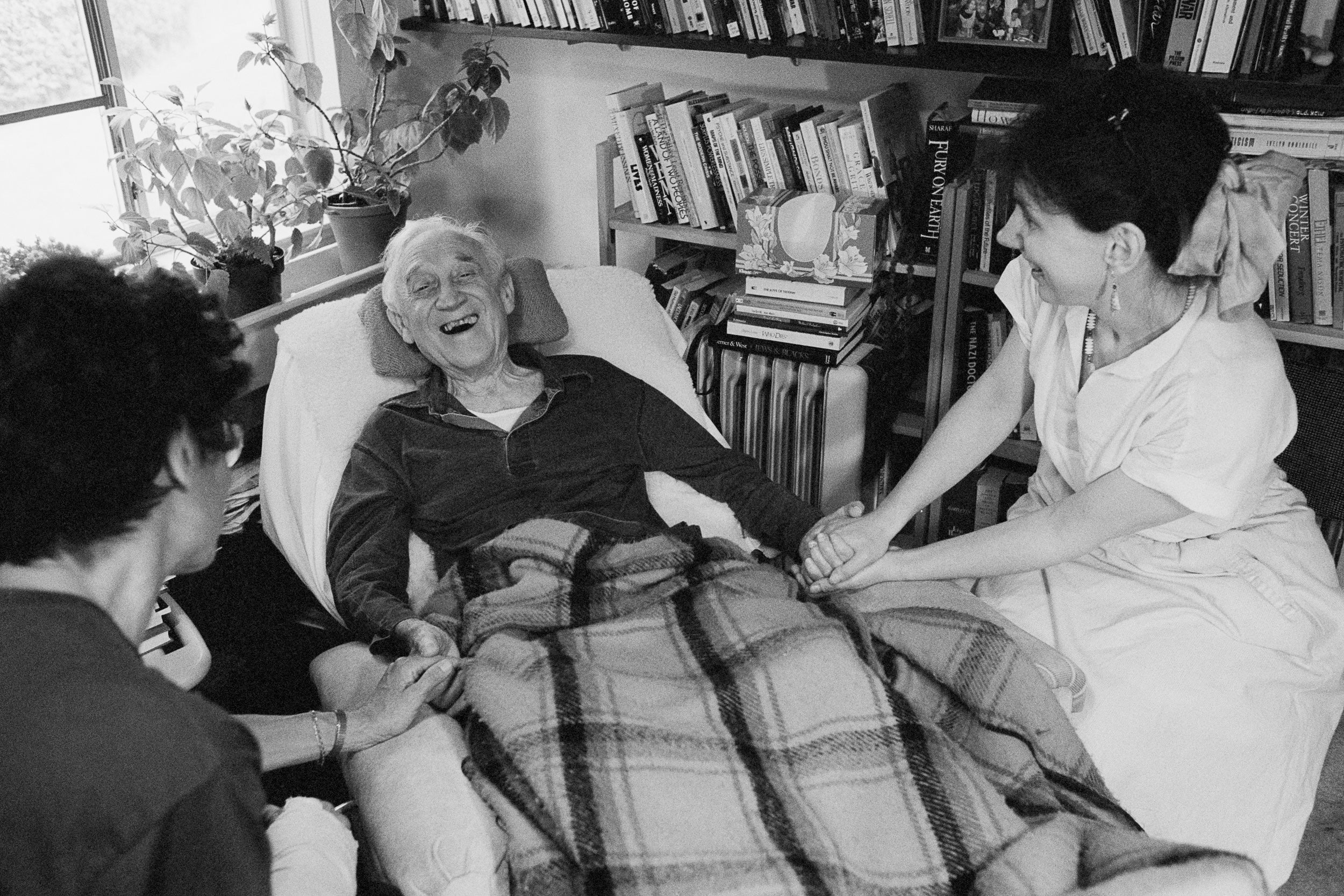 In 1995, photographer Heather Pillar collaborated with Morrie Schwartz during the last six months of Morrie's struggle with ALS. The project illustrated Morrie's philosophies through photographs made of family, friends, caregivers, reaching out to community and self-care. Over a quarter-century later, Morrie's wisdom resonates with many people around the world due to the best-selling memoir to date: Tuesdays with Morrie by Mitch Albom. Morrie's warmth and vitality comes through in each photograph to illustrate love and loss; caregiving and self-care; family, friends and always community. Morrie taught people, including Heather - how to live fulfilling lives with love. It is by facing fears of death that we learn how to live.